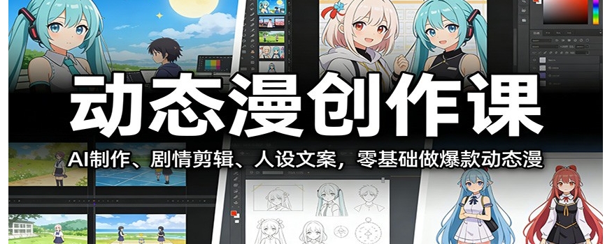本套动态漫课程是一套完整的二次元 AI 动态漫实战教程,从零基础开始,带你从剧情、文案、人设、分镜,一直做到高清成片。课程详细讲解动态漫核心要点、优秀作品拆解、出图与剪辑软件使用,手把手教你文案改写、人物设定、视频粗剪、剧情节奏把控。从前十秒抓眼球到完