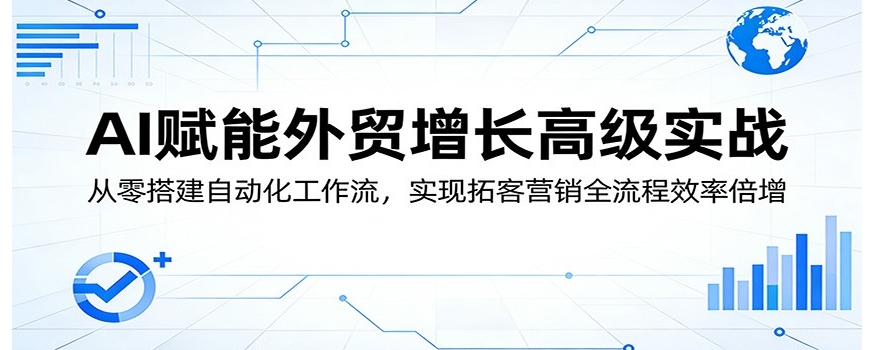 本套 AI 赋能外贸增长高级实战教程,专为外贸从业者打造,从 AI 元能力到底层工作流逻辑,全面破解外贸人 AI 使用三大困局。课程涵盖 AI 商业级商品图生成、领英社媒内容自动化、Google+LinkedIn 智能拓客、秒级生成商务 PPT 等实战技能,深度横评主流自动化平台,还教