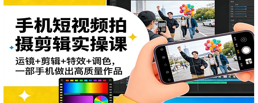 - 手机短视频拍摄剪辑实操课:运镜+剪辑+特效+调色,一部手机做出高质量作品