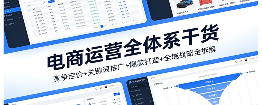 系统化电商运营实战课,专为电商运营者、创业者打造,覆盖从基础运营到企业战略的全核心模块,多节细分课时深耕每一个实操要点。课程按逻辑循序渐进,先讲解市场切分、竞争策略与定价技巧,再深入拆解关键词推广、出价优化等流量核心技能,接着详解爆款打造、营销优化