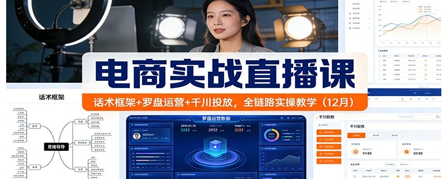 - 电商实战直播课:话术框架+罗盘运营+千川投放,全链路实操教学(12月)