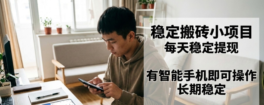 - 稳定搬砖小项目,每天稳定提现,有智能手机即可操作