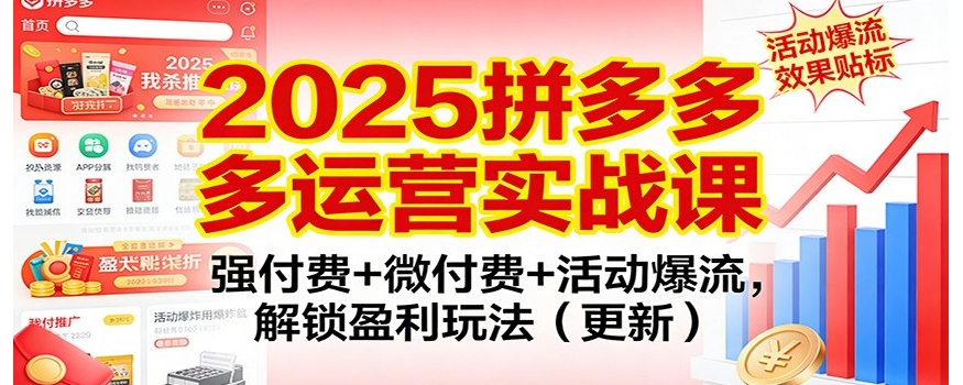 本套多多特训营 12~1 月课程,专为拼多多商家、运营操盘手打造,聚焦平台最新玩法与 2026 年运营趋势。课程涵盖全新 3.01 矩阵 SOP 实操方法,拆解从起量到盈利的 3 阶段控投产流程;深度讲解新无限推荐流 2.0 玩法,传授洗 SKU 实战技巧与最新版洗图防比价策略,助力