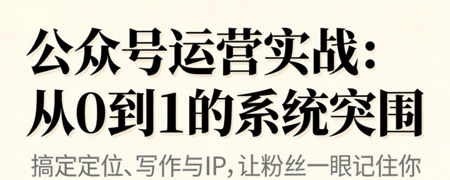 7节实战课聚焦公众号从定位到变现的全流程,用通俗方法讲透赛道选择、账号装修、爆款逻辑等关键环节,适合想做公众号副业/主理人的新手,学完就能直接落地操作。