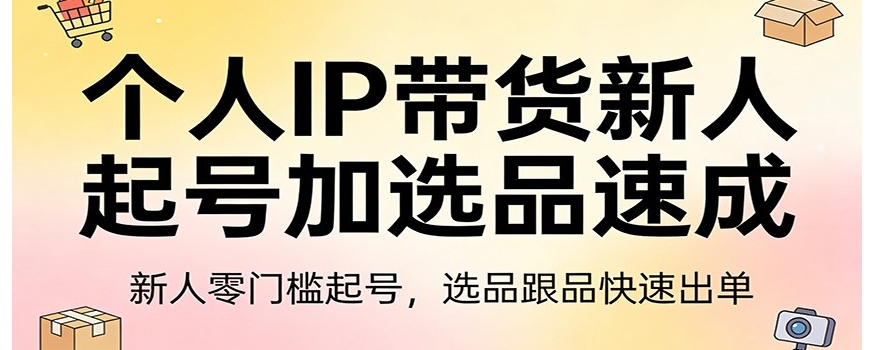 本课程专为个人 IP 带货新人打造,聚焦起号涨粉与选品核心,实现新手快速入门、高效出单。内容涵盖真人出镜口播、不露脸两种实用涨粉实操方法,适配不同新人需求;详解新人未爆单时的快速选品技巧,以及出单后的选品跟品策略,精准解决新人选品难题。同时解读 2026 年